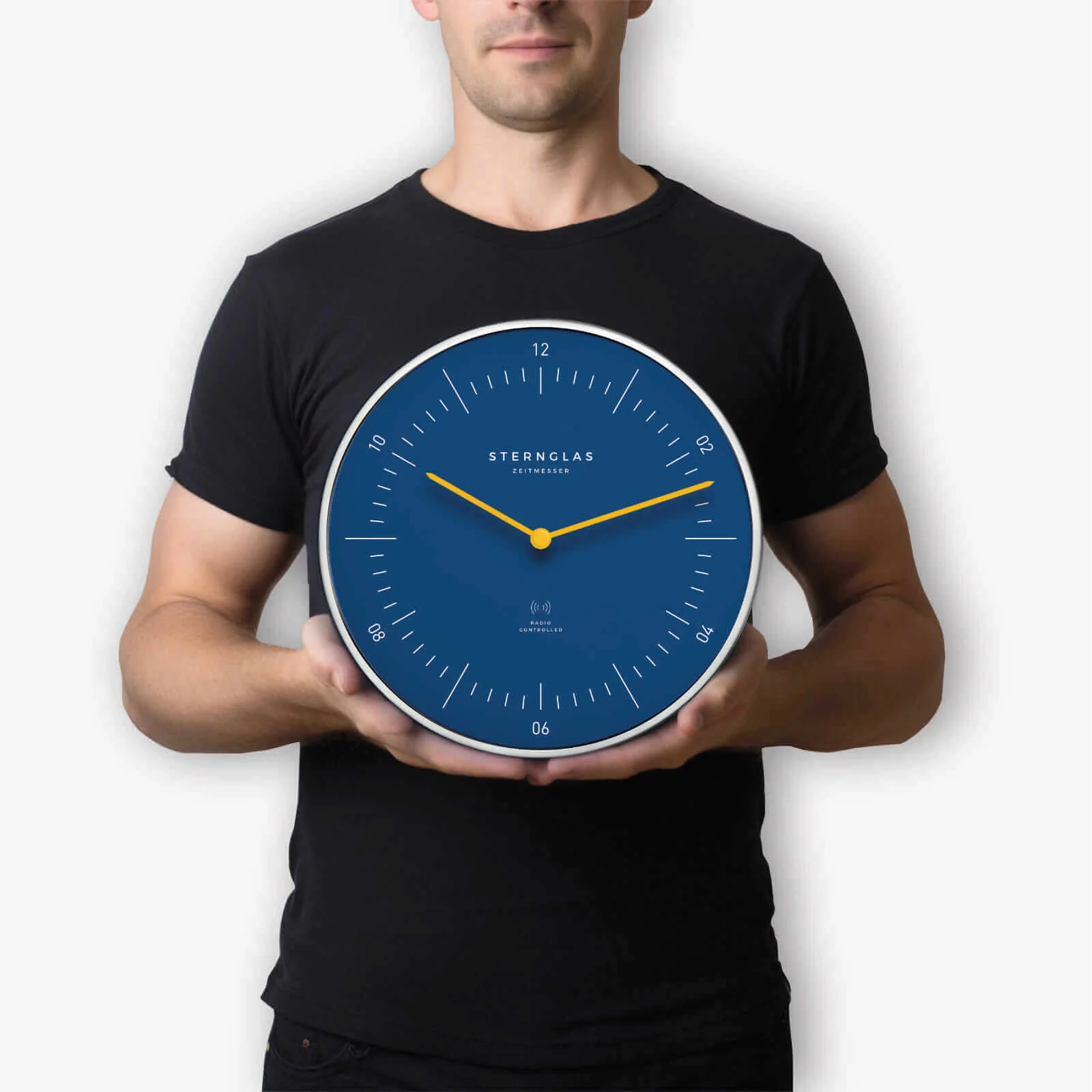 Das schlichte Bauhaus-Design mit dem weißen Zifferblatt, den blauen Zeigern und dem fein gewölbten Glas verleihen der Wanduhr eine zeitlose Eleganz. In Kombination mit dem polierten Aluminiumgehäuse wird die Wanduhr zu einem Blickfang in jedem Raum. Kein Wunder also, dass das Zifferblatt-Design der Naos im Jahr 2020 mit dem renommierten iF Design Award ausgezeichnet wurde.